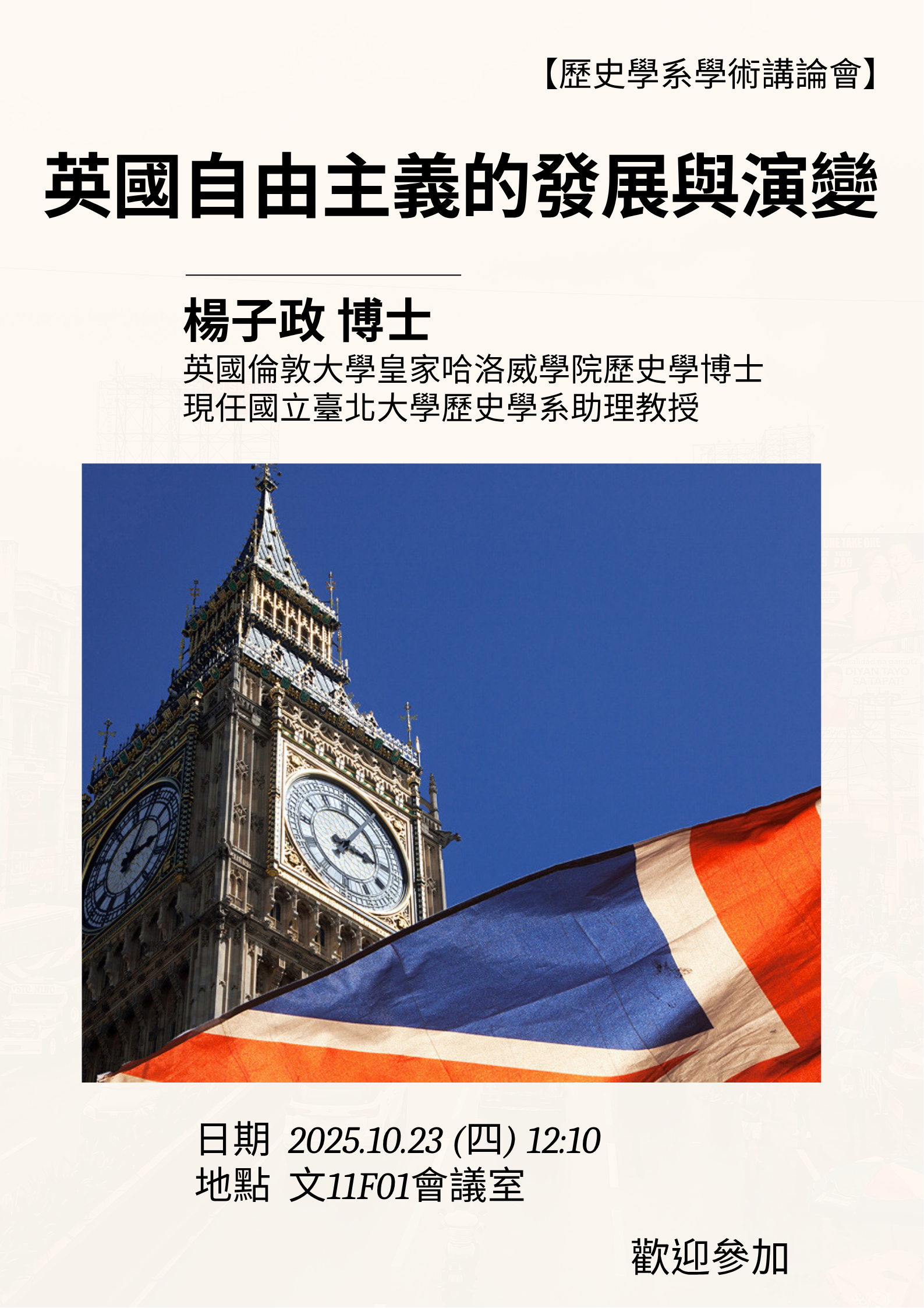 演講人:楊子政 博士 英國倫敦大學皇家哈洛威學院歷史學博士 現任國立臺北大學歷史學系助理教授