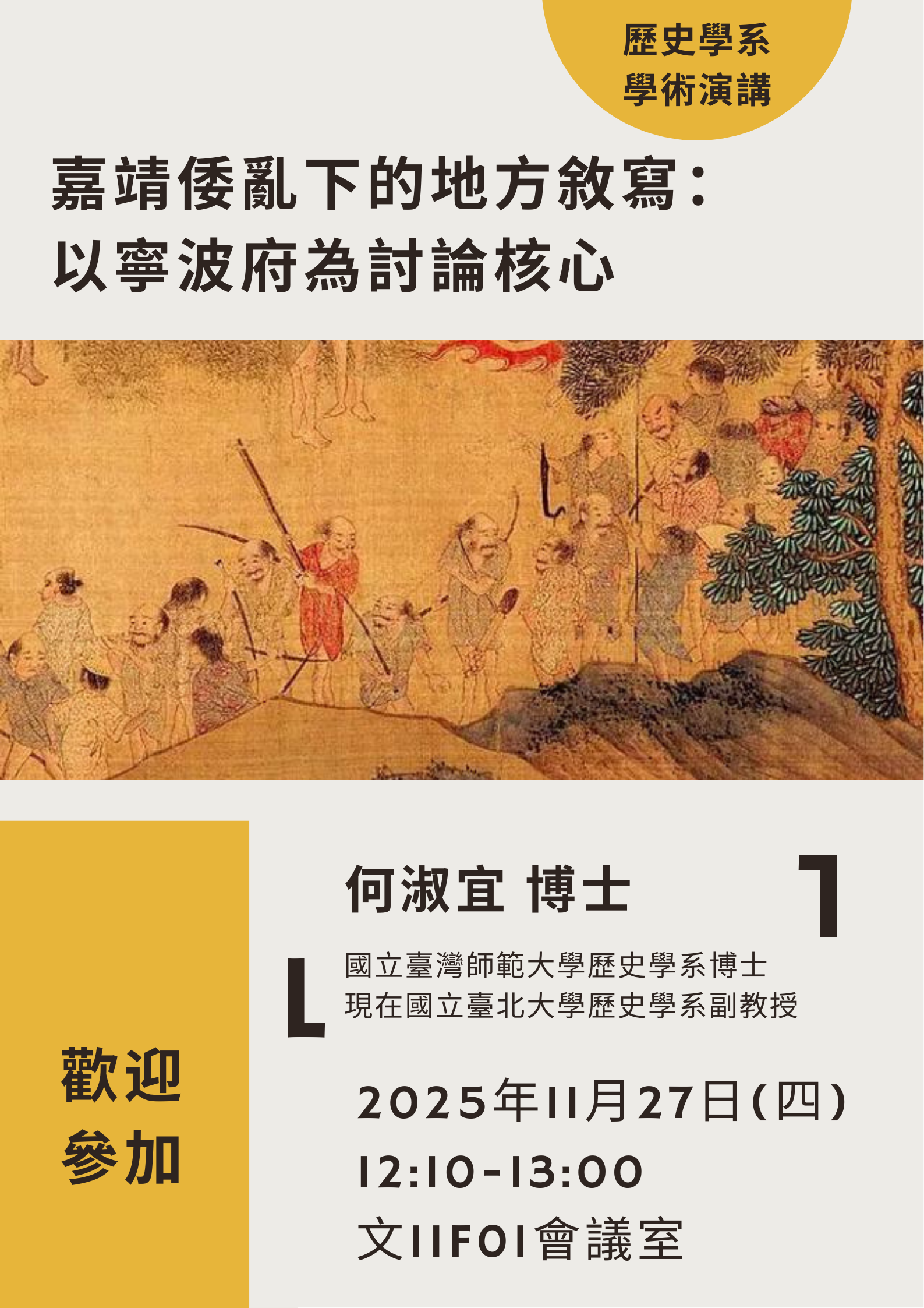 何淑宜博士講論會-嘉靖倭亂下的地方敘寫: 以寧波府為討論核心