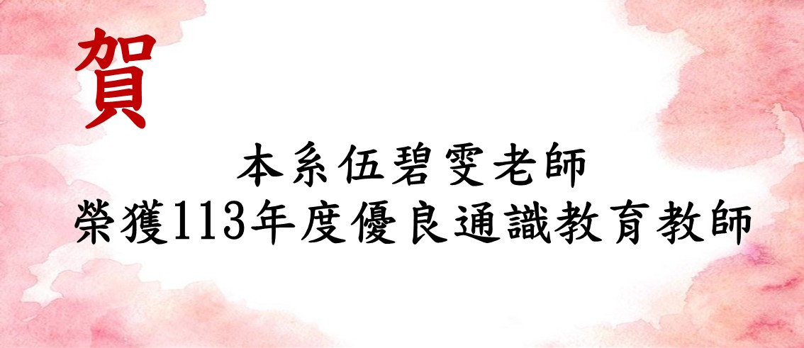 【賀】本系伍碧雯老師榮獲113 年度優良通識教育教師